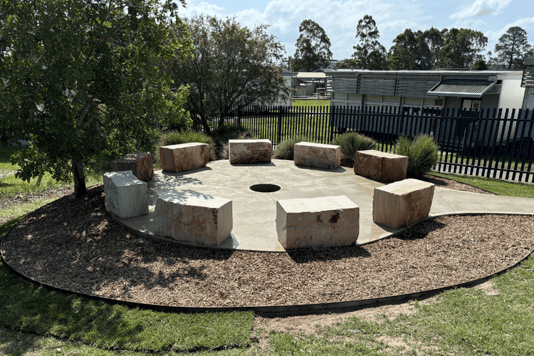 - A yarning circle set in a native garden for cultural learning and ceremonies